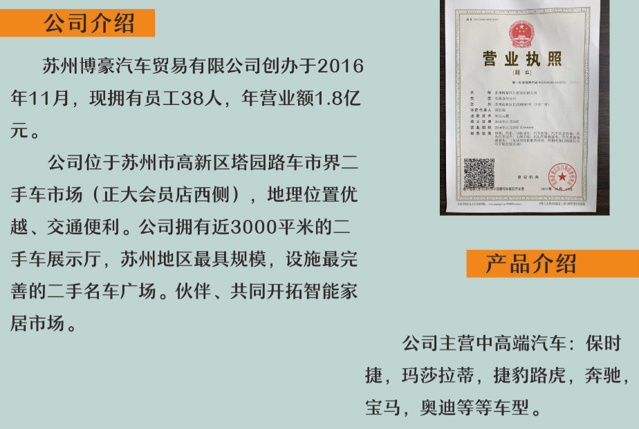 创办:苏州博豪汽车贸易有限公司担任:总经理