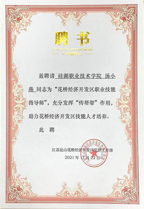 我院教师被聘请为首批“花桥经济开发区职业技能指导师”