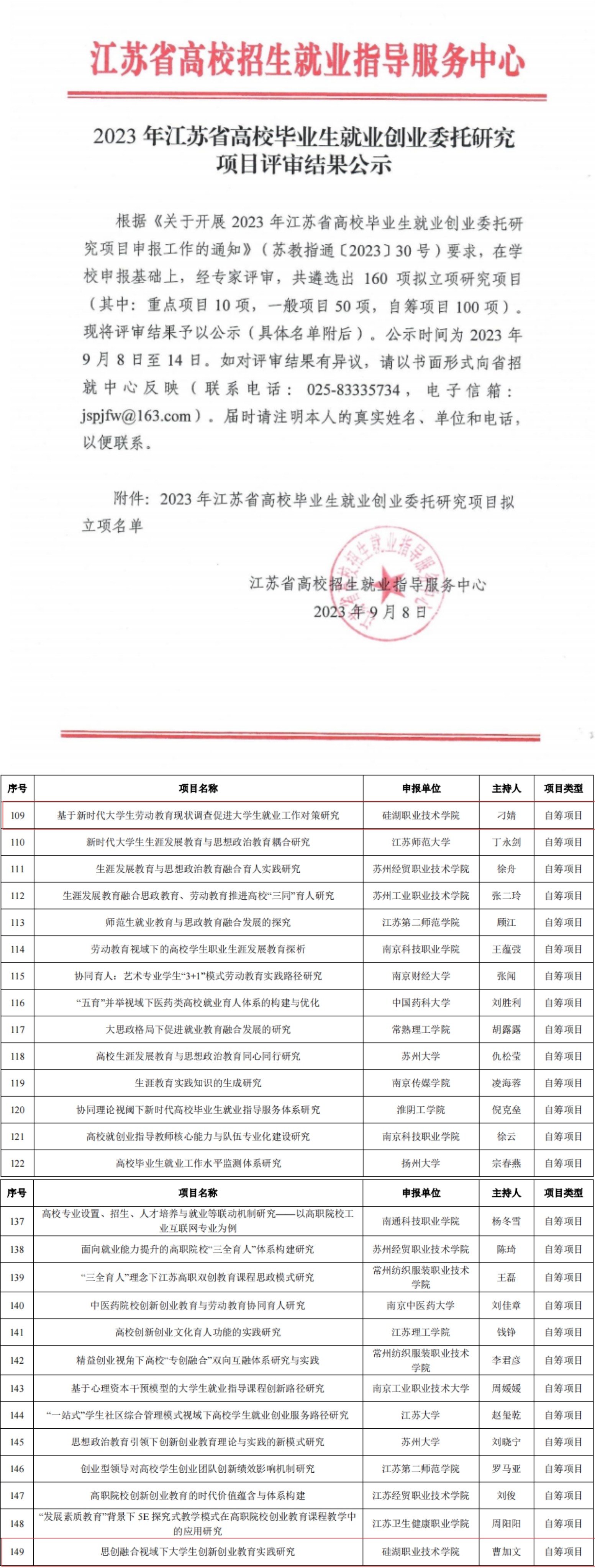 喜报:我校两位教师课题获2023年江苏省高校毕业生就业创业研...
