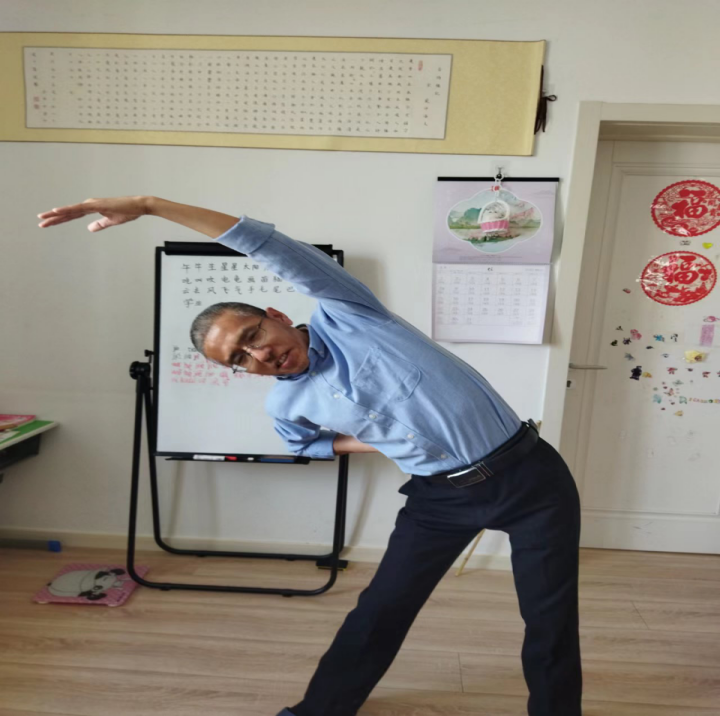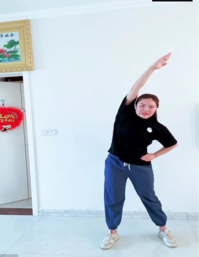 活动开始之初,体育教研组杨老师开启了广播体操的预热模式,以简单的动作带领大家舒展筋骨,慢慢热身,慢慢打开身体关节。 广播体操分为7个小节: 伸展运动、扩胸运动、,踢腿运动、 体侧运动、体转运动、全身运动、跳跃运动。7天时间,杨老师通过腾讯会议给大家展示分解运动, 引领大家一起动起来。
