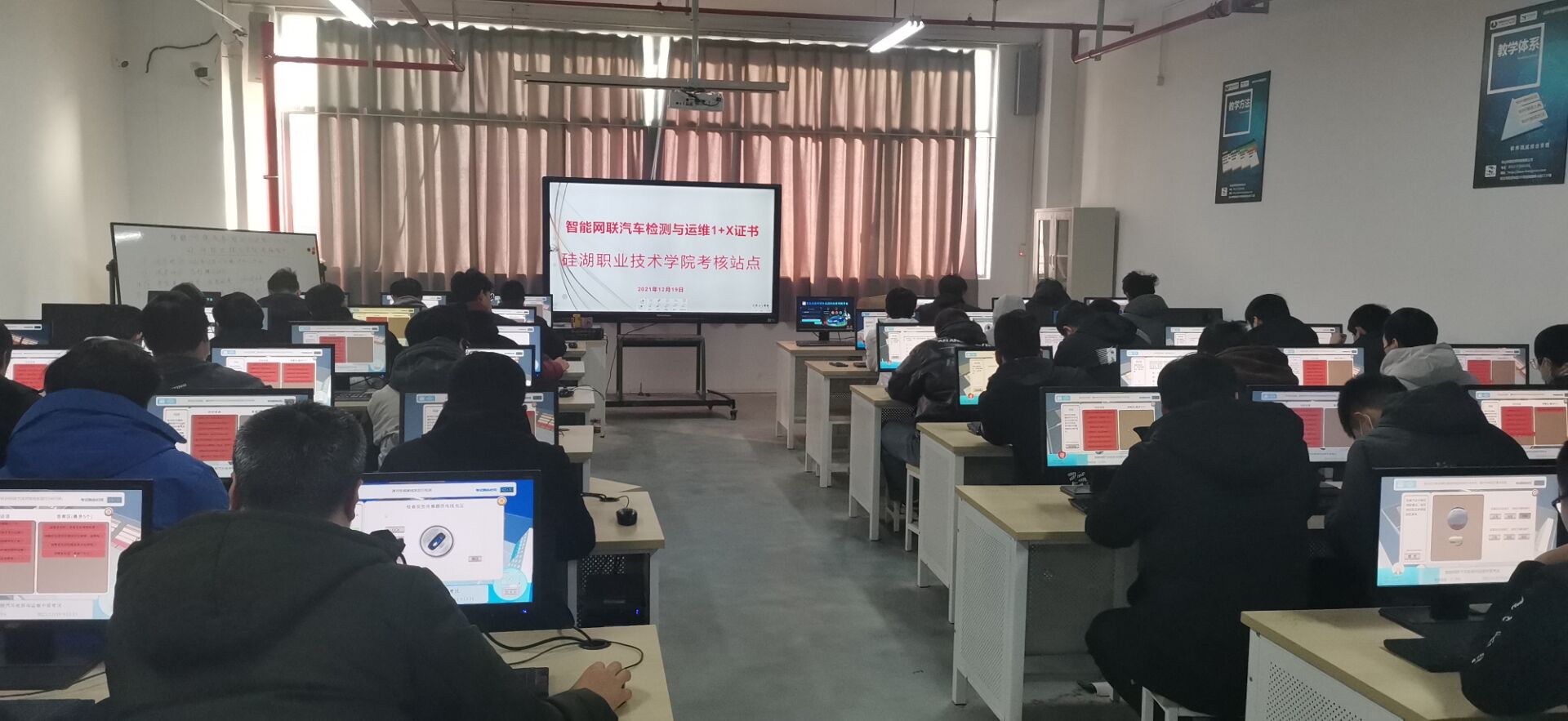 2021年12月19日上午,在硅湖职业技术学院教务处的领导和支持下,汽车与交通工程学院成功举办智能网联汽车检测与运维1+X职业技能等级(中级)认证考试。