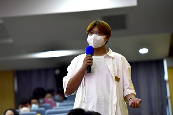在讲座最后,他还和同学们热烈互动,就同学们关心的“躺平青年”等话题进行了面对面交流。