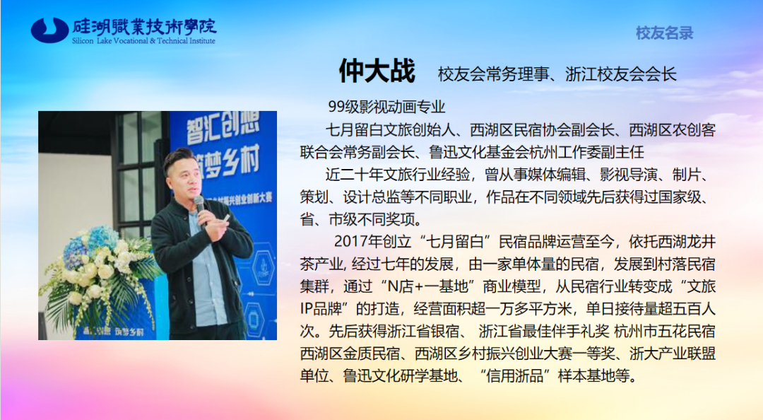 会议讨论了浙江校友会会长人选,并一致通过由校友仲大战担任浙江校友会会长。仲会长也做了进一步表态发言,表示自己会尽全力配合学校和校友总会做好浙江校友会的相关工作。