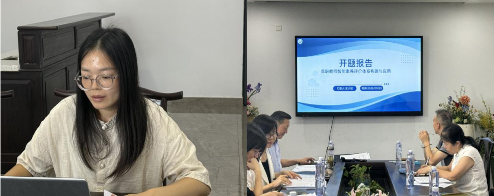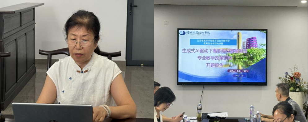 此次开题,共涉及4个课题,其中有两项为重点课题,分别是张盛/盛精主持的“AI视域下‘四真三化’驱动高职机电专业高质量课堂教学改革路径与评价”江苏省高等教育研究课题,辛玉欣/盛精主持的“AI融合视角下高职课程知识图谱构建与实践教学赋能研究--以《公差配合与测量技术》为例”教育信息化研究课题。课题主持人主要从课题研究背景意义、课题的研究任务和内容、课题研究思路、课题的研究创新点、课题的研究计划和安排、课题预计取得的成果等这几个方面展开汇报。汇报结束后,各位审评专家进行点评并给出指导性的意见,课题主持人就专家提出的问题进行答辩。