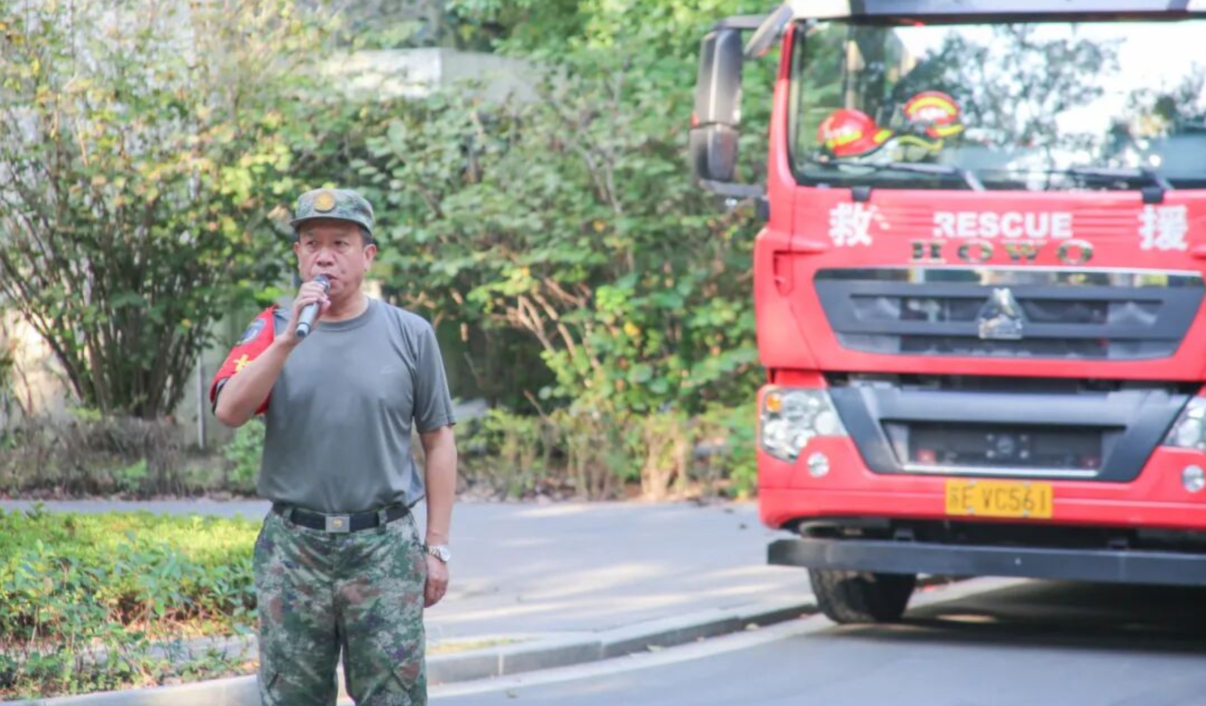 演练尾声,保卫处林志刚副处长对本次演练进行总结点评。他首先向花桥消防中队的指战员们表示衷心的感谢,希望消防中队一如既往的支持我校消防安全工作。他同时肯定了全体参演师生的出色表现,认为学生们在演练中展现出的快速反应能力与团队协作意识,为后续校园安全管理工作奠定了良好基础;他指出要以此次演练为契机,常态化开展消防安全知识学习,真正将逃生技能与防护意识内化于心、外化于行,主动学习专业消防知识,共同守护校园安全。