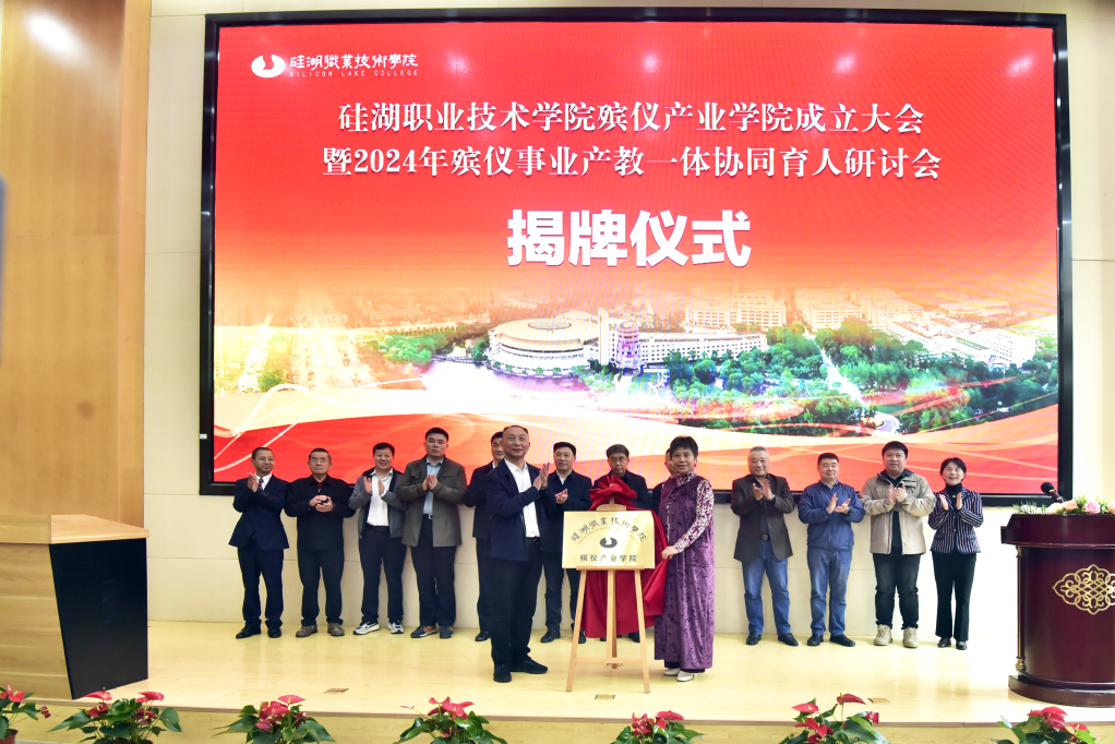 硅湖职业技术学院殡仪产业学院聘任我国现代殡葬职业教育开创者和奠基人、中国首届黄炎培职业教育奖获得者王夫子教授担任首任院长,兼任学术带头人。学院还聘请20余位殡葬业知名人士和专业人才担任客座教授、专兼职教师,采用产教一体协同育人和教师双岗双聘机制。
