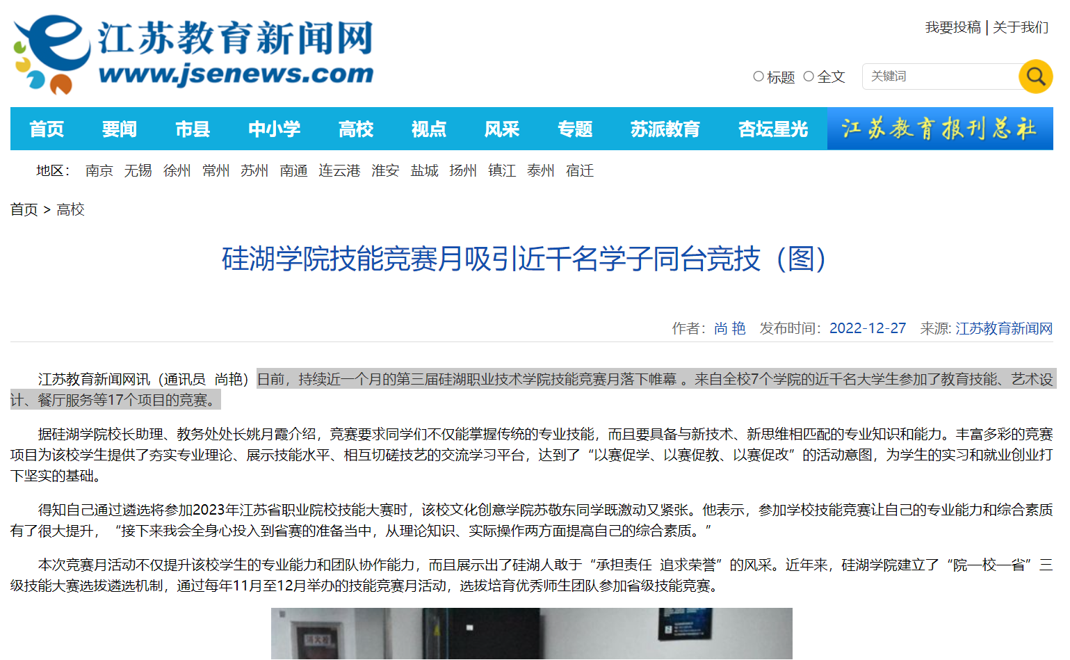 本次竞赛月活动不仅提升该校学生的专业能力和团队协作能力,而且展示出了硅湖人敢于“承担责任 追求荣誉”的风采。近年来,硅湖学院建立了“院—校—省”三级技能大赛选拔遴选机制,通过每年11月至12月举办的技能竞赛月活动,选拔培育优秀师生团队参加省级技能竞赛。