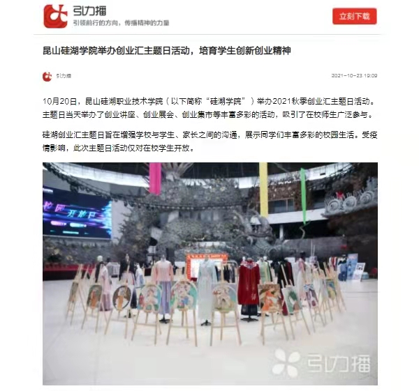 10月20日,昆山硅湖职业技术学院(以下简称“硅湖学院”)举办2021秋季创业汇主题日活动。主题日当天举办了创业讲座、创业展会、创业集市等丰富多彩的活动,吸引了在校师生广泛参与。