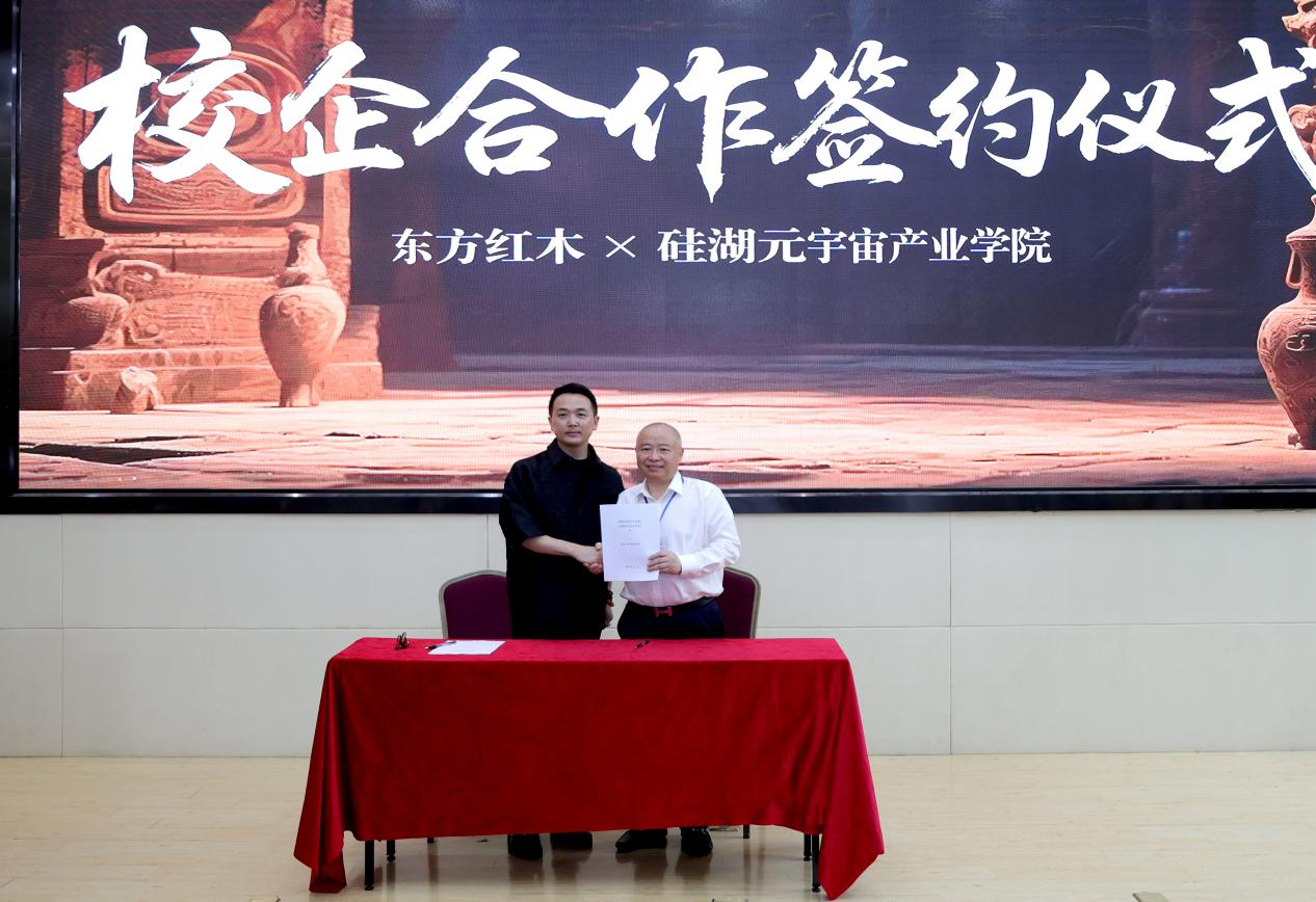 活动中,硅湖元宇宙产业学院与东方红木家具有限公司签署战略合作协议。姚向东董事长与王辉院长代表双方签约,未来将围绕元宇宙技术研发、人才培养及传统工艺数字化升级展开深度合作,打造产学研协同创新标杆。