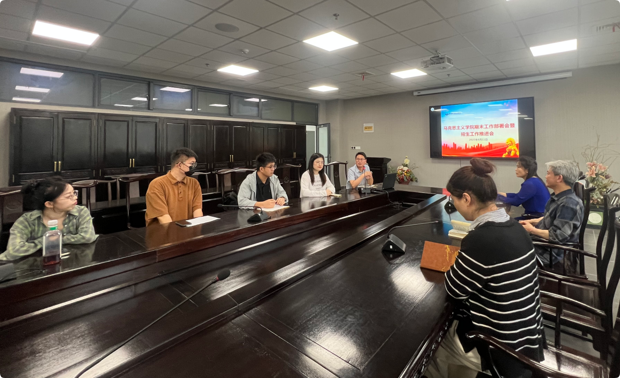 为提升我校生源质量与专业吸引力,广泛汇聚招生资源扩大招生宣传覆盖面,马克思主义学院于近日召开2025年招生工作推进会,会议特别邀请招生对接指导老师、党委办公室主任朱建副教授进行指导交流。会议旨在集思广益,借鉴经验,共同探索高质量招生宣传新路径。马克思主义学院全体教师参与会议。