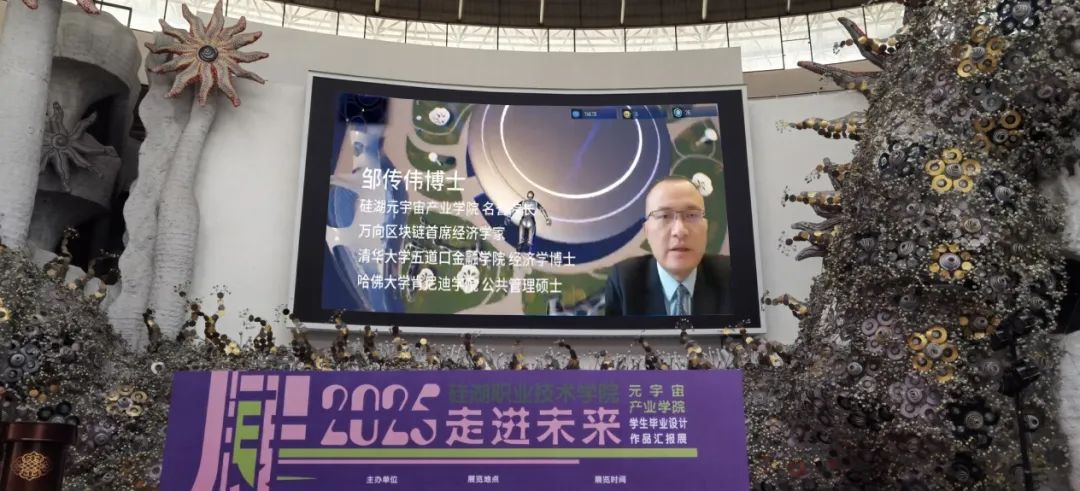 元宇宙产业学院名誉院长、万向区块链首席经济学家、清华大学五道口金融学院经济学博士、哈佛大学肯尼迪学院公共管理硕士邹传伟先生:元宇宙是以信息基础设施、互操作系统、内容生产系统、价值结算系统等作为底层架构的数字空间,通过数字身份和各种应用联结现实用户,由经济激励和治理规则维系社会关系和系统运转,反映了人类社会的数字化大迁徙进程。元宇宙的学子们学逢其时,祝元宇宙产业学院的老师们和同学们紧紧把握当下有利背景,勇做元宇宙时代的弄潮儿,在工作和学习中取得佳绩!