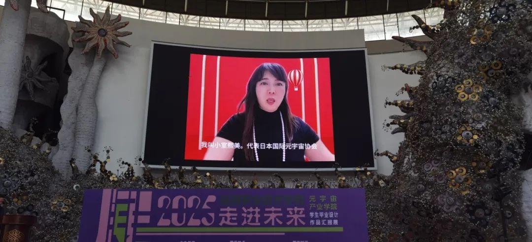 日本国际元宇宙协会会长小室熙美女士:元宇宙产业学院的学子们是这一领域的先锋和探索者,你们呈现的作品不仅展示了在元宇宙技术和艺术设计方面的才华和创意,更体现了对数字世界的深刻理解和热爱,每一件作品都凝聚着你们的心血和智慧,更是硅湖元宇宙产业学院教育成果的最好体现。