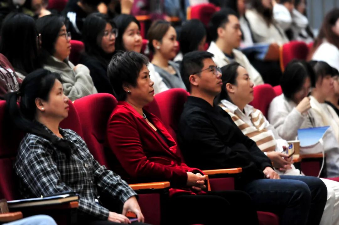 会议第三项是健康产业学院代理院长姚月霞教授为全体师生介绍硅湖学院当前改革重点及健康产业学院发展愿景。她首先回顾了硅湖1998年建校到2024年改革转型的当下,硅湖学院始终坚守为党育人,为国育才的教育担当,累计为社会输送了3万多名优秀人才。学校从创校之初就坚持培养创业型人才,办一所不一样大学的教育使命,以创业型人才培养为主体,强调立德树人、产教一体为两翼的“一体两翼”人才培养模式,以完全学分制为特色、硅湖烙印课为亮点,以13种优良品质、10大学长制等创新举措培养学生创新创业精神和能力。其次,她宣布了董事会发布的健康产业学院成立时间为2024年9月10日,让大家牢记这一值得纪念的日子。最后,她向大家分析了人工智能时代与老龄化社会双重挑战下,学校整体向智慧养老方向转型发展的背景,健康产业学院顺势成立,就是为了能够更好地顺应这一发展趋势,培养更多兼具专业素养与创新创业能力的优秀智慧养老产业所需人才。学院已成功引进了一批拥有丰富实践经验以及深厚学术造诣的优秀教师。这些优秀的教师们将以“FT课程”实施教学,发挥引领示范作用,助力学生实现全面成长与进步。此外,学院还紧密根据行业发展动态趋势以及市场实际需求,持续不断地优化课程设置体系,大力加强实践教学环节,竭尽全力提升学生的专业技能水平与综合素质能力,致力于精心打造一个集教学、科研、社会服务等多功能于一体的综合性智慧康养产业人才培养高地。