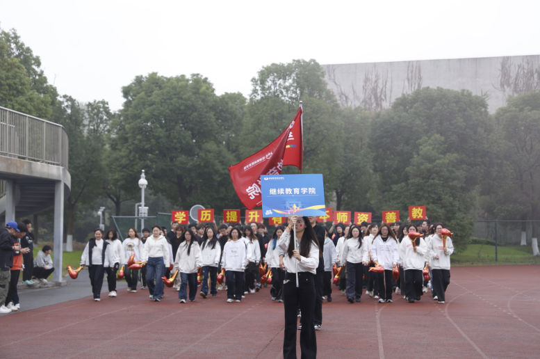 2024年11月15日上午我们怀着满心的期待来到了操场,第二十六届校运动会在田径场拉开帷幕。学校全体师生欢聚在田径场集体参加、观看开幕式和运动员方队入场式。每个运动方阵都排着整齐的队伍,伴随着运动员进行曲走过主席台,那场面可谓壮丽非凡。继续教育学院队员们迈着整齐划一的步伐,手持希望的火炬,朝气蓬勃地走向主席台前,当我们齐声喊出响亮的口号:“学历提升有道,接本师资善教”的那一刻,仿佛整个世界都被我们的激情所点燃。