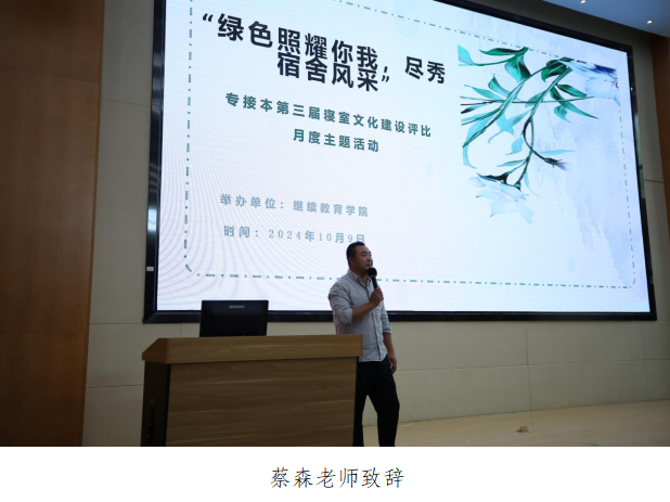 最后,蔡森老师对本次活动进行了精彩点评。他指出,通过此次活动,不仅激发了学生的创意潜能,提升了宿舍的文化品味,还增强了学生的环保意识和团队协作能力,共同营造了一个更加宜居、充满活力的校园生活环境。他对本次活动的组织、过程和结果给予了高度肯定,并鼓励未获表彰的宿舍向获奖宿舍学习,同时希望继教的学子们在以后的各项活动中都能有更加出彩的表现。