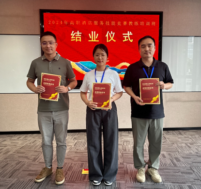 根据江苏省高等职业教育教师培训中心《关于做好2024年江苏省高等职业院校教师国家级省级培训项目实施工作的通知》文件精神和工作要求,推动建设高素质“双师型”职业教育师资队伍,服务江苏现代职业教育体系建设。2024年7月4日至10日,在南京旅游职业学院举办了全省酒店服务技能竞赛教练培训项目。我校经管学院陈旭峰老师在前厅、餐饮、酒水以及小组说课汇报等各课程绩效考核中均表现优秀,荣获本次省培优秀学员称号。