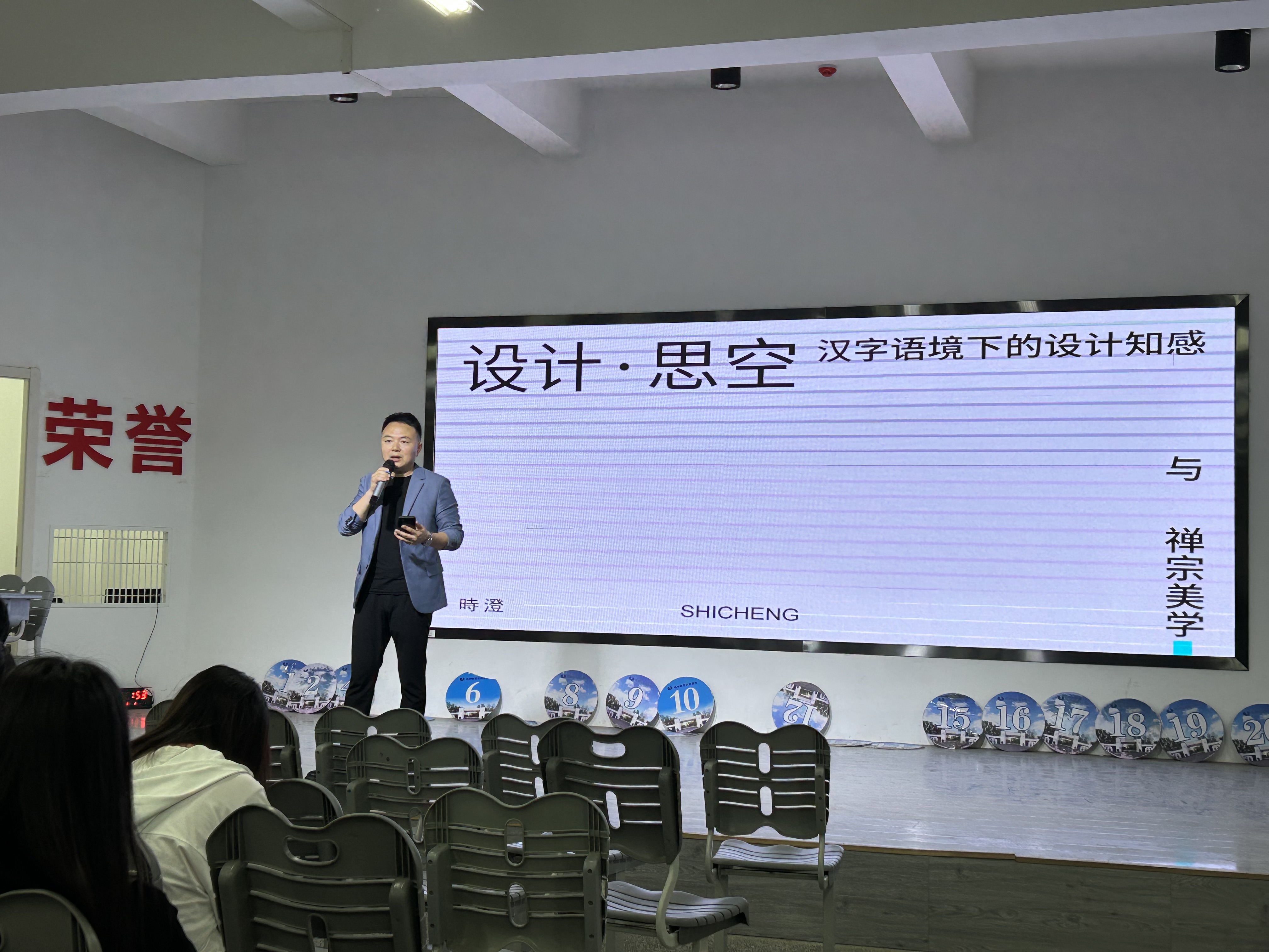 时澄老师首先分享了自己接触美术,成为设计师的历程;在案例展示阶段,他结合自己的作品,从多个角度和维度进行了讲解,不仅向同学们传递了自己设计时的朴素思考,也通过大量案例解析了“如何提高师生技能大赛水平”。