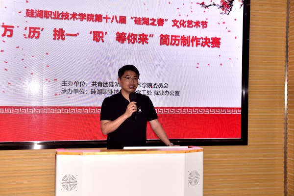 大赛伊始,学生工作处副处长陈建隆致辞,他表示为贯彻落实教育部、省教育厅关于做好大学生的就业指导和服务工作相关精神,指导学生做好职业规划,帮助学生提高职业素质和求职能力,普及简历设计基本理念,提高就业竞争力,我校组织了此次比赛。希望同学们以此次比赛为契机,从这项活动中汲取能量,努力补足短板,让个人的简历更出彩,成长为更优秀的新时代大学生。
