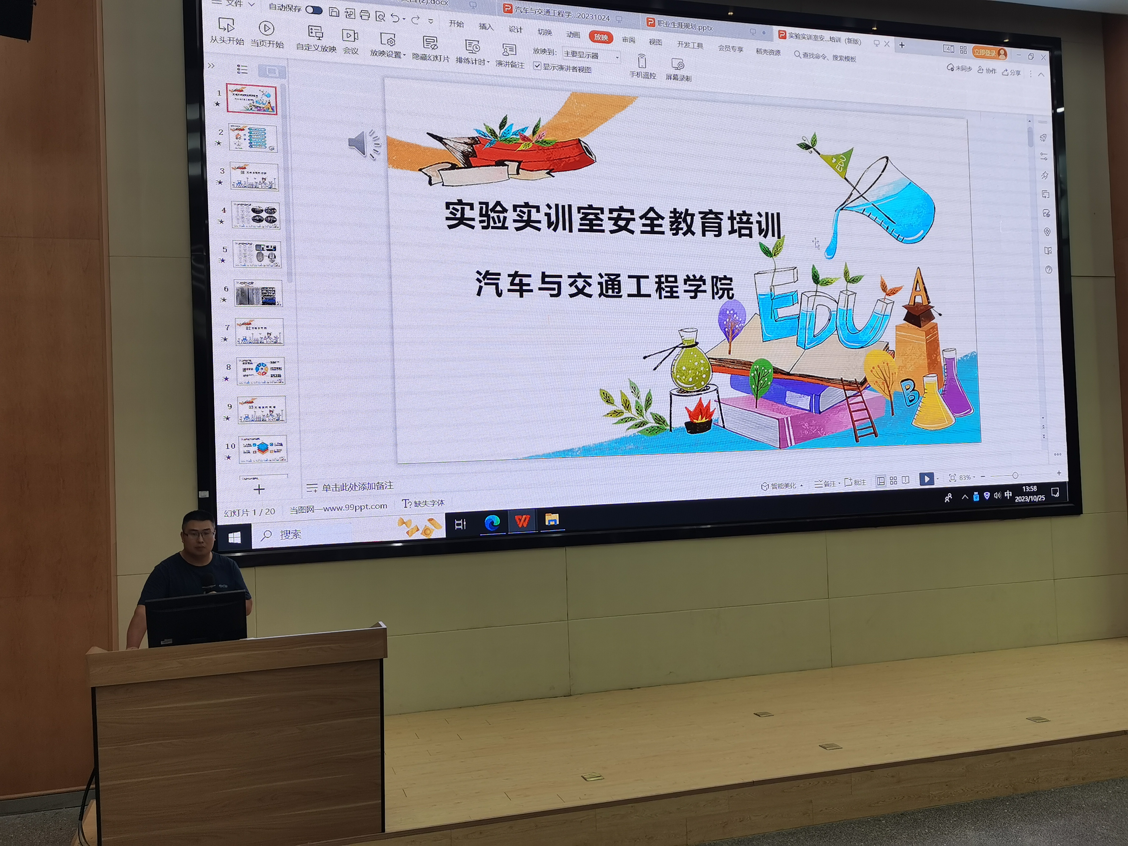为深入贯彻落实党的二十大精神,不断提高学生实验实训过程中的安全意识、自我保护意识和应急处置能力,确保学院教学实验实训室安全有序运行,2023年10月25日下午13:30,汽车与交通工程学院在育才楼104举办了2023级学生实验实训室安全教育培训,培训由汽车学院实训室管理员冯健老师主持。