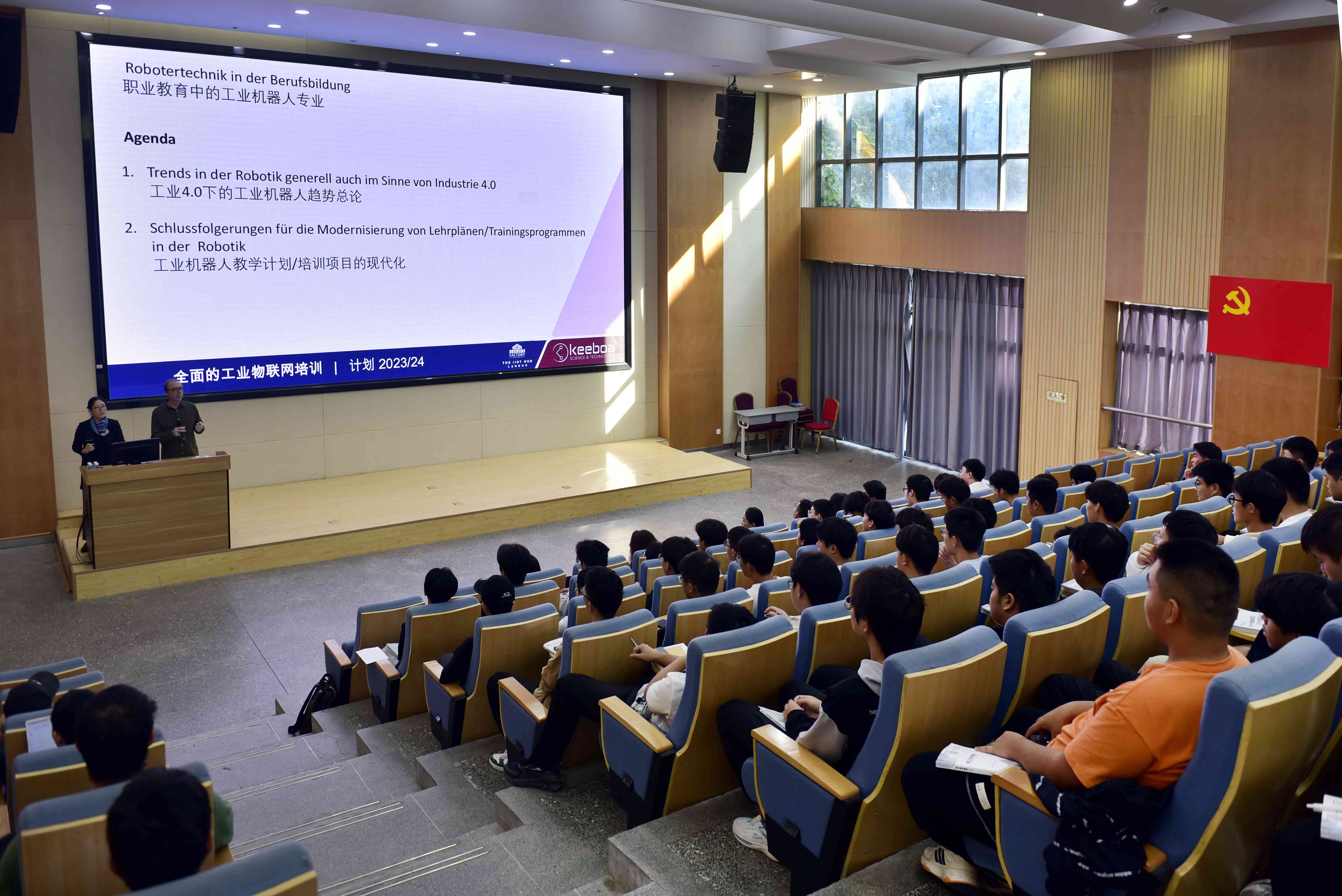 Horst Stadler是机械、机电一体化、工业机器人和工业4.0等领域的课程设计、培训车间设计、师资培训等方面的资深专家,长期负责多所院校的项目开发、课程教学和技术项目实施,具有丰富的行业经验。讲座上,Horst Stadler向同学们介绍了目前工业机器人的发展趋势、企业的人才需求、学生应该如何做才能在专业领域有更好的发展等。讲座内容专业,讲解方式深入浅出,学生踊跃提问,现场气氛热烈。
