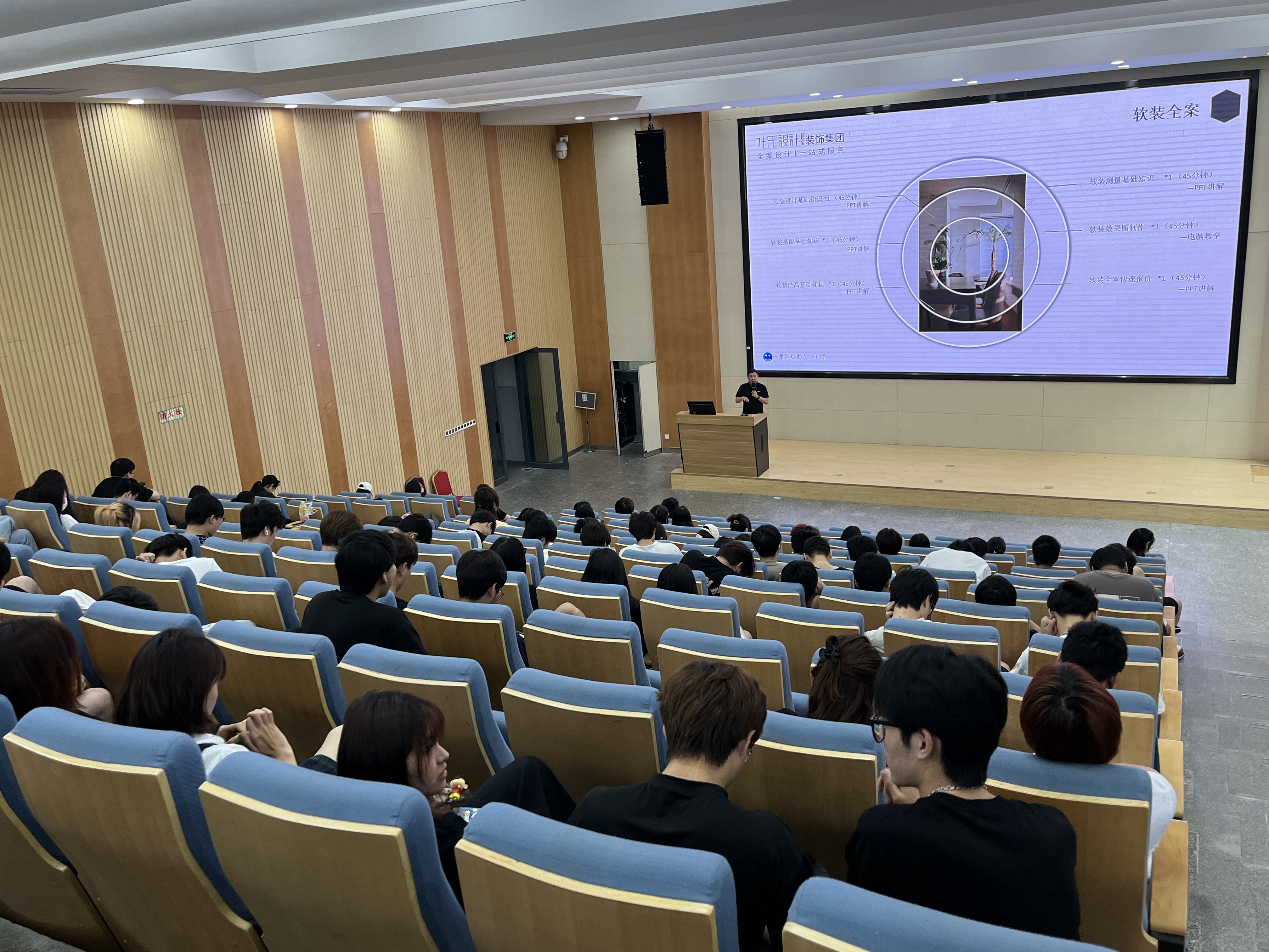 丁总详细分享了叶氏集团18年发展历程、荣获资质、旗下品牌,并依据地产市场发展形势及现代AI人工智能发展的现状,总结了存量时代装饰设计发展的新机遇、新挑战。在此基础上,他提出了叶氏集团专业技术培训计划方案,帮助同学们梳理思路,理清职业方向。叶氏设计装饰集团计划在今年9月面向毕业班同学开办免费装饰设计技术培训,帮助同学们为从校园到设计公司平稳过渡打好基础。