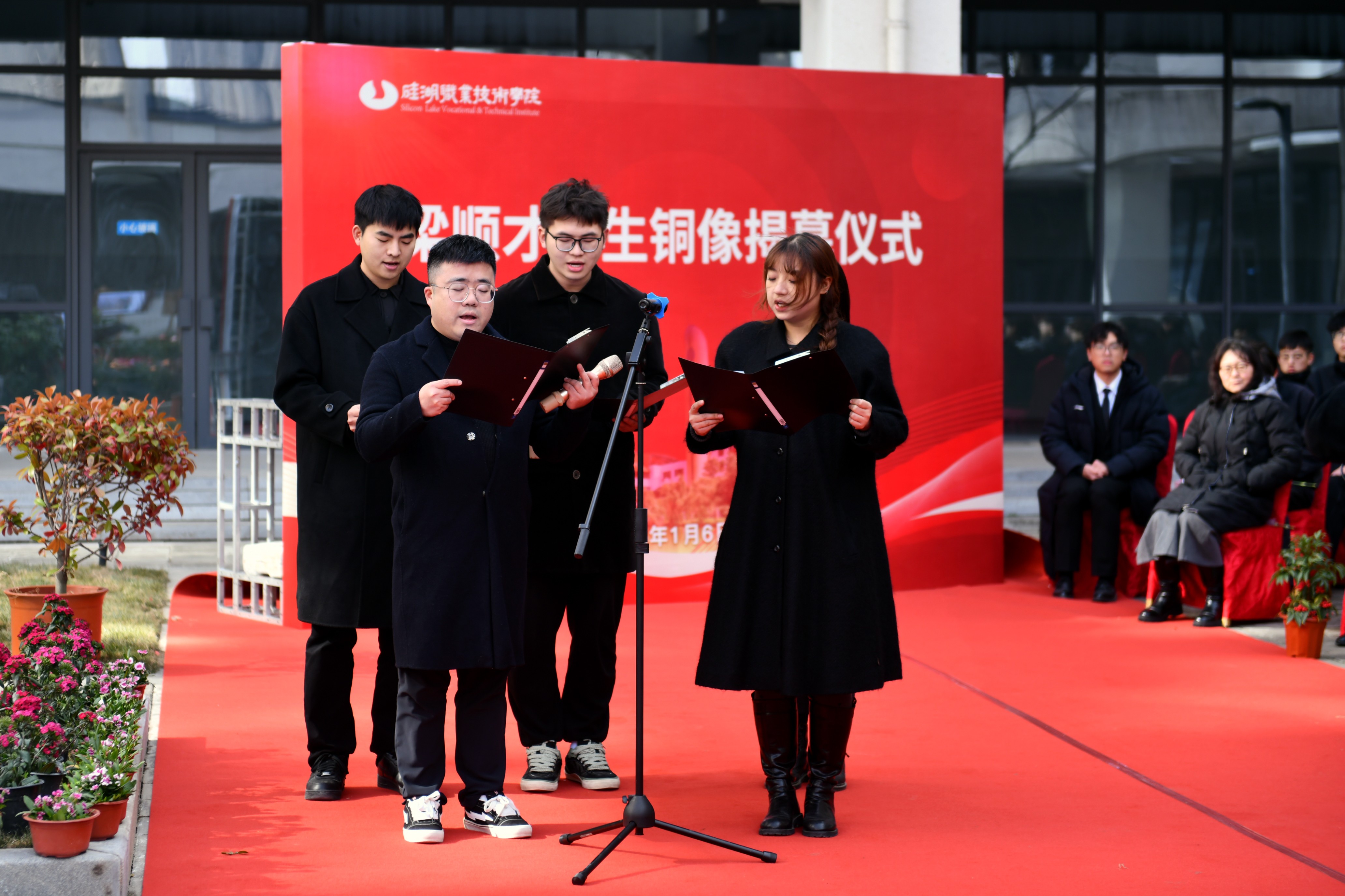 1月6日上午,硅湖职业技术学院校园内庄重肃穆,在这样一个特别的日子里,一场意义深远的仪式——学校创办人梁顺才博士铜像揭幕典礼在此隆重举行。各界嘉宾、师生代表齐聚一堂,共同见证这一具有深远意义的时刻。冬日的晨光洒落在铜像上,熠熠生辉,梁顺才博士的面容慈祥而坚毅,仿佛依旧在凝视着这片他倾尽全力浇灌的教育沃土,眼神中满是对莘莘学子的期许与关怀。