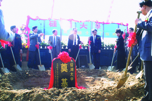 梁顺才博士,这位怀揣教育梦想的建筑学博士、美籍华人,早在海外便已在教育领域崭露头角,出版诸多学术著作并获得多项杰出设计奖项。然而,目睹祖国教育事业亟待发展,高等教育资源亟待扩充之时,1998年,梁顺才博士毅然与史宝凤博士共同归国,倾资办学,踏上这条充满挑战的教育拓荒之路。彼时,他们怀揣着对未来的无限憧憬,依循一流本科大学的高标准,在昆山这片充满希望的土地上,为硅湖大学(筹)奠基,自此开启了硅湖逐梦的传奇篇章。