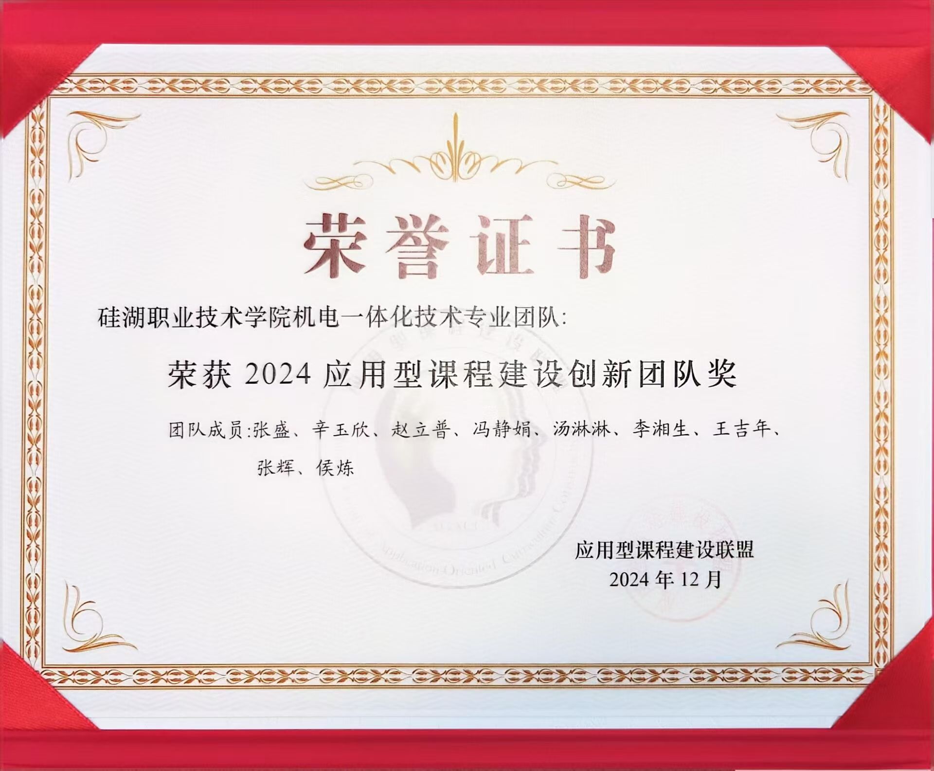 大会还举行了2024应用型课程建设创新奖颁奖仪式,我校机电汽车工程学院机电一体化专业团队荣获“2024年应用型课程建设创新团队奖”。