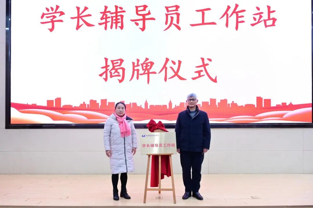 接下来,“学长辅导员”工作站揭牌暨聘任仪式正式进入了重要环节。开始进行的是工作站揭牌,副校长祁丛林、学长辅导员工作站指导老师张丽助理为其揭牌。这不仅标志着工作站的正式成立,更象征着学长辅导员们将肩负起新的使命和责任。