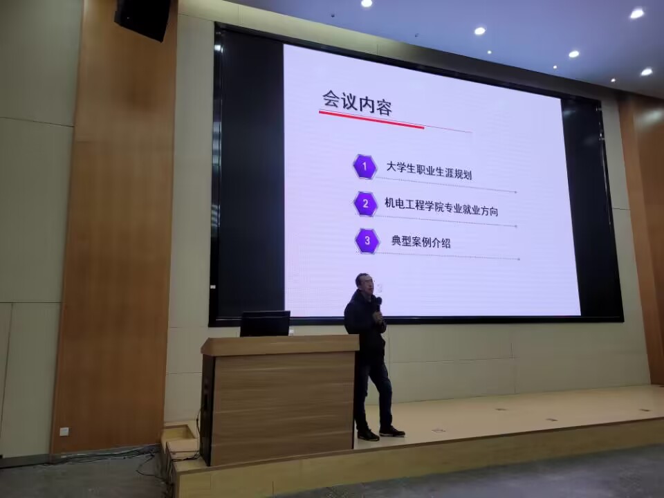 为了帮助同学们明确未来的发展方向和目标,做好职业生涯规划,推动高质量实习就业,4月12日晚机电工程学院在育才楼104报告厅开展了职业生涯规划讲座。机电一体化技术和机械制造及自动化两个专业的百余名同学参加了讲座。
