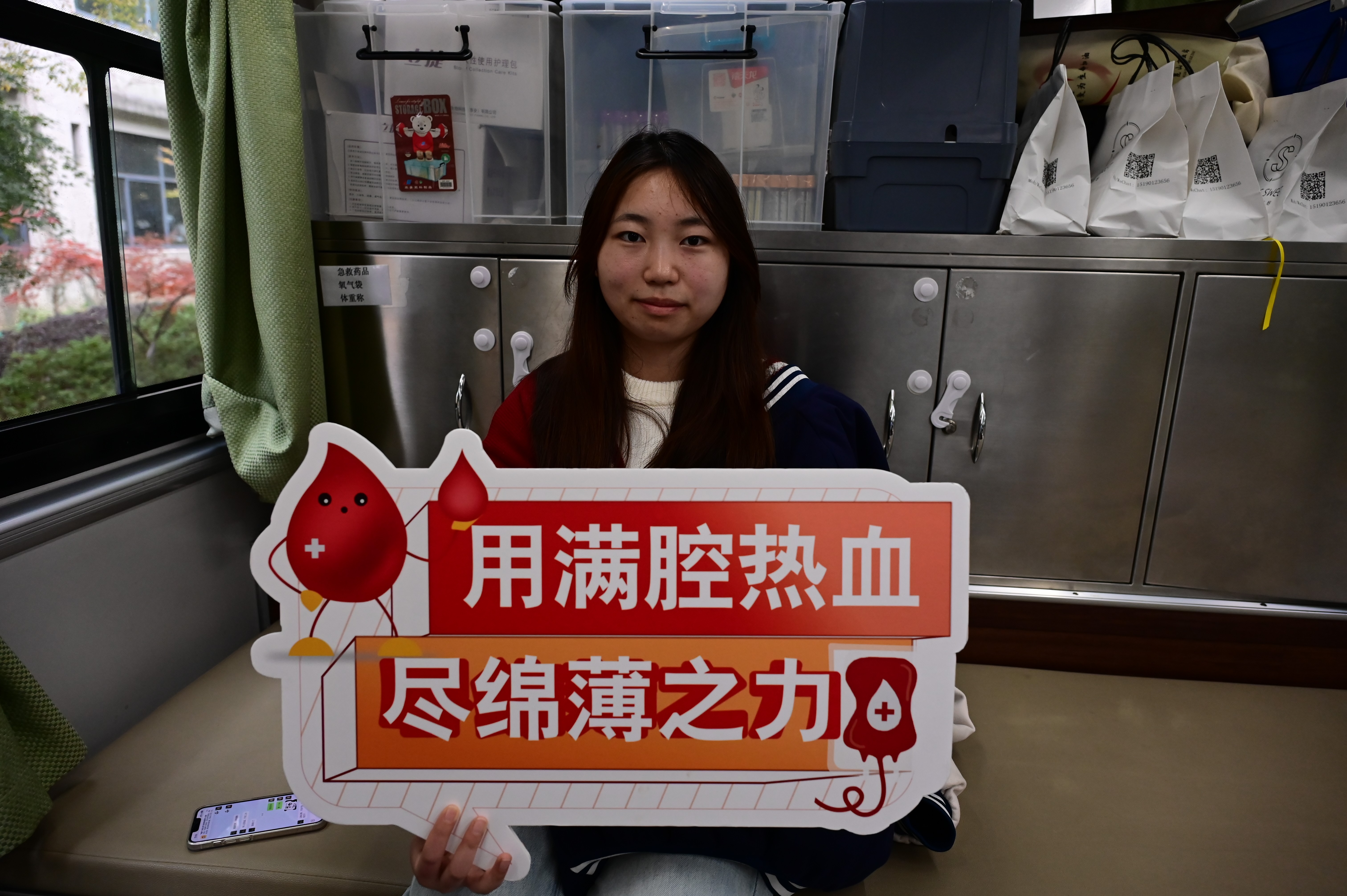 陈学茹是本次献血活动中第一个献血的同学,她是经济管理学院大数据会计专业大一新生,刚满18周岁。在群里看到班长发的无偿献血的宣传,下了课她就马上赶来献血了,没想到自己是第一个成功献血的学生。她说无偿献血既能给社会做贡献,以后也能有机会帮到自己的亲人。
