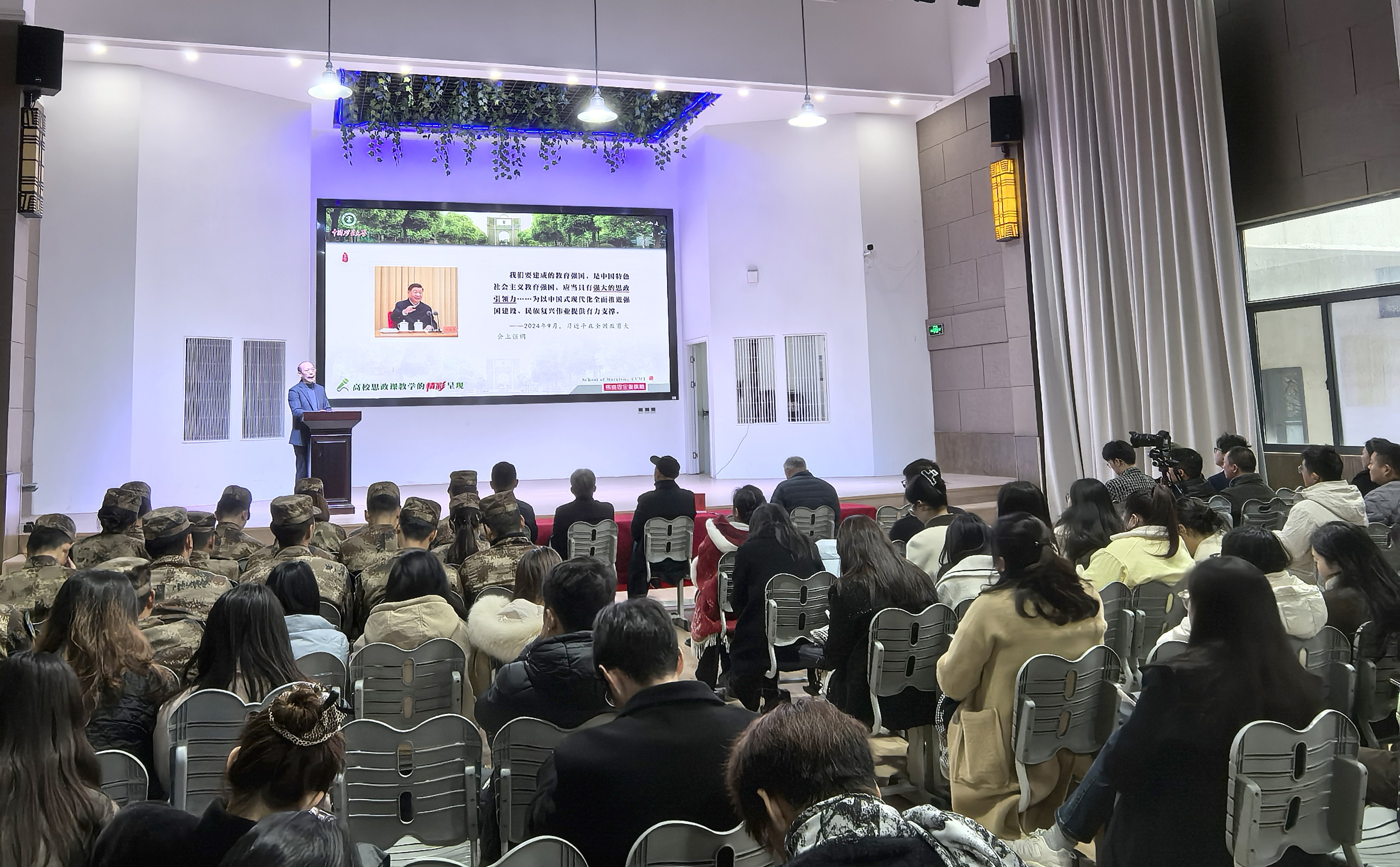 为进一步推动学校思想政治教育工作走深走实,提升课程思政水平,落实立德树人根本任务,12月5日,我校有幸地邀请到了首届全国高校思政课教师年度影响人物,全国高校思政课教学能手,江苏省高校思政课教学指导委员会委员,中国矿业大学边和平教授,为师生们带来了一场主题为《从意义到意思 从意思到意义——高校思政课教学的精彩呈现》的专题报告讲座。此次活动由我校关心下一代工作委员会、马克思主义学院、教师发展中心以及学生工作处联合举办,旨在进一步提升我校思政课程的教学水平,并加深师生对思想政治理论教育的认识与理解。