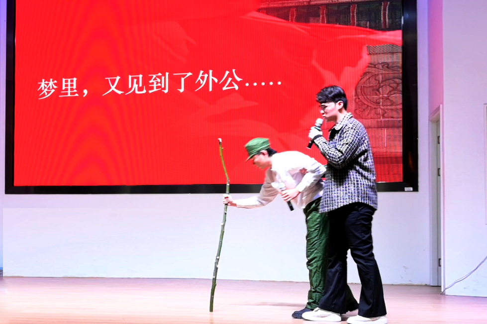 本次讲座分为四个环节。首先进行的是学生展示环节,题目为《我愿以身许国》。在这一环节中,化怡鸣、黄信超和吕若佳三位同学通过演讲和话剧的形式,深情讲述和演绎了自己外公从军的故事。他们巧妙地将一个小人物的命运置于大时代背景下,通过生动讲述小人物的起伏经历,成功引发了听众的情感共鸣。边和平教授对三位同学的展示给予了高度评价,认为选择自己外公的故事作为切入点非常恰当且富有感染力。同时,他在点评中也提出了一些建议,指出在讲故事时可以适当放慢节奏,使内容更为丰富,并在结尾部分进一步升华主题,以便更好地传递思政教育的深刻内涵。