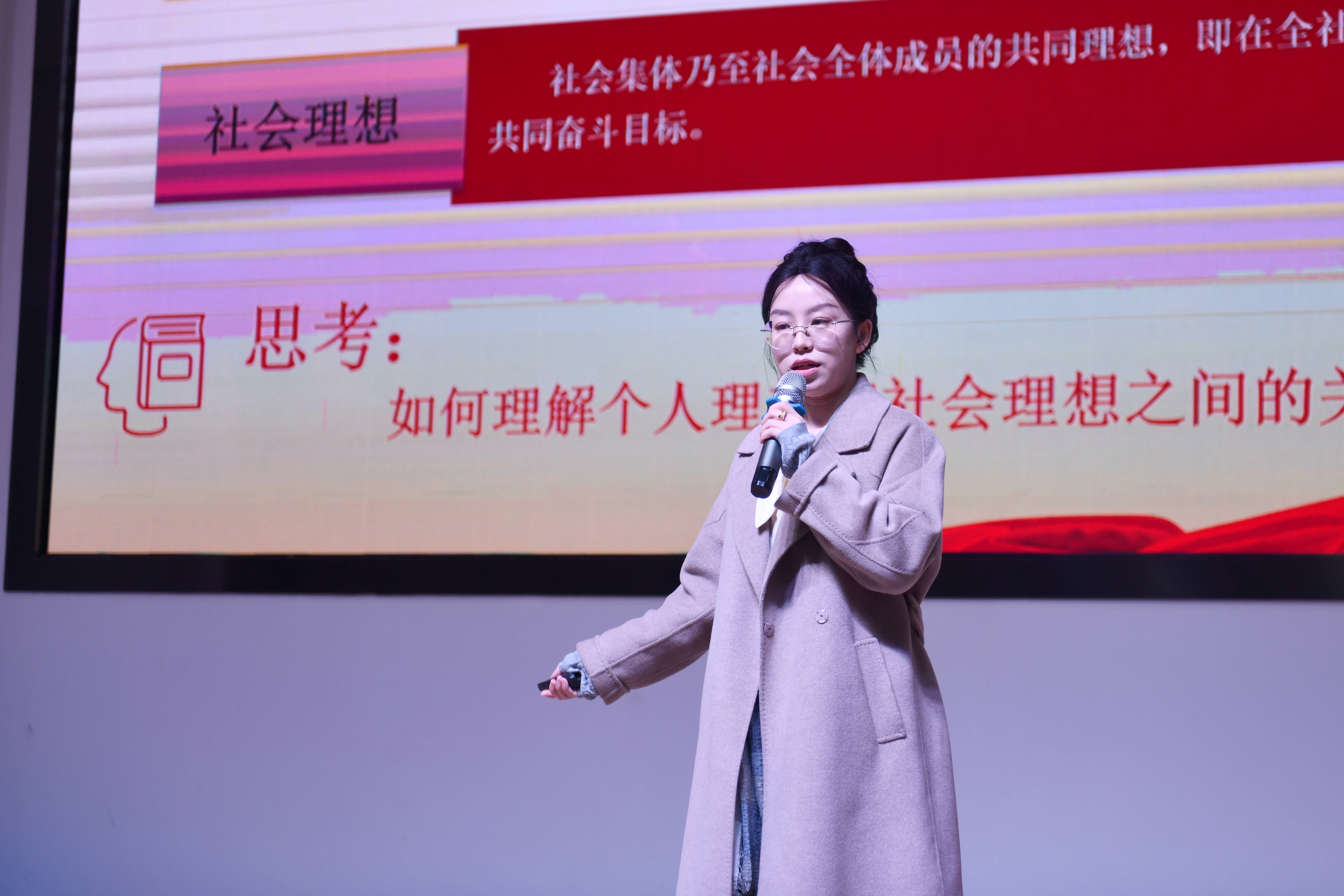 接下来是马克思主义学院教师的教学环节展示。刘雪迎老师给大家带来了题为《核潜艇之父——黄旭华》的演讲,她情绪饱满,用故事导入,启发学生通过听黄旭华的故事,思考个人选择和国家前途的关系。