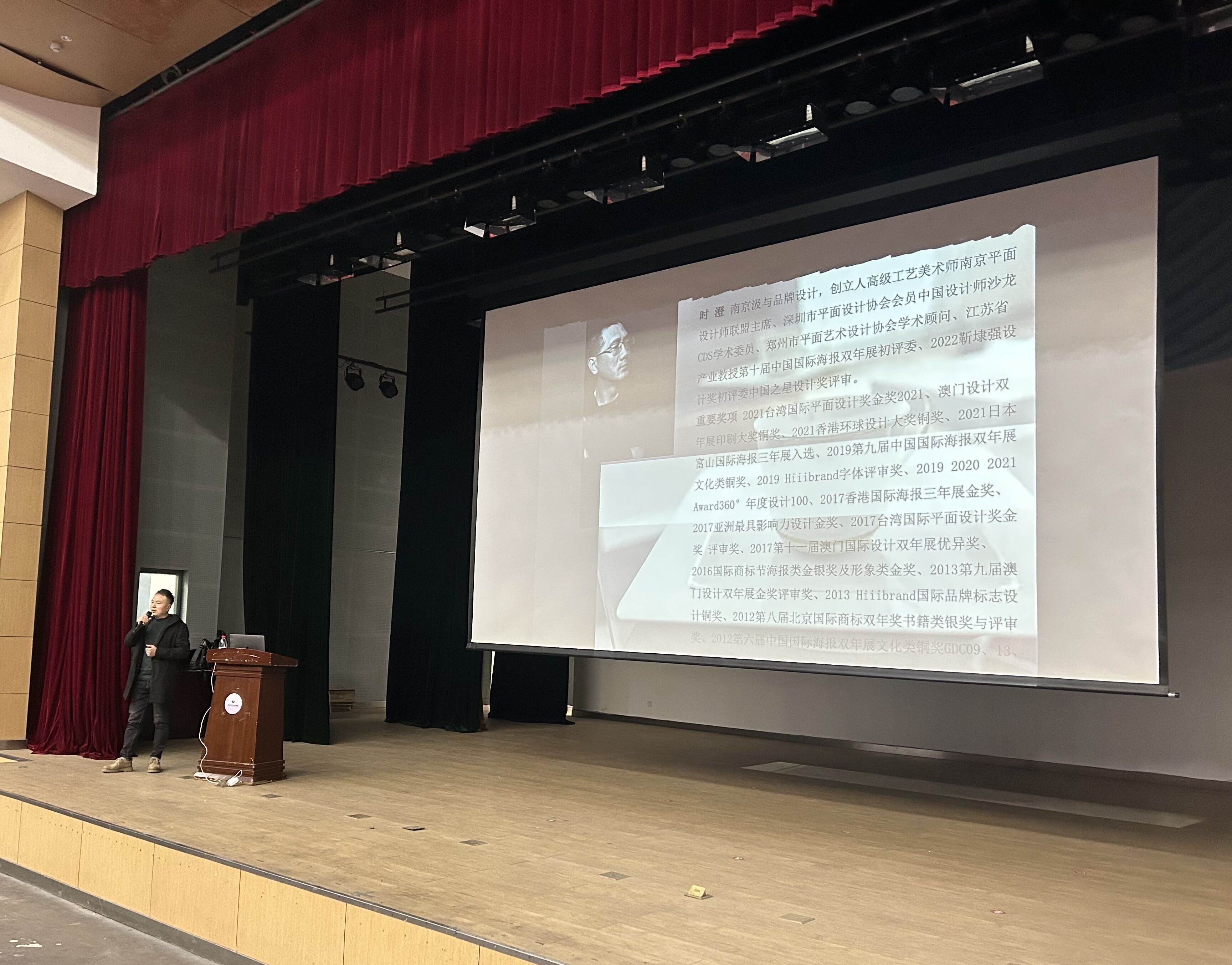 此次讲座以我院开设艺术设计专业为载体,结合平面设计理念,涉及海报设计、标志设计、字体设计等多模块,通过案例传递和弘扬中国传统文化。