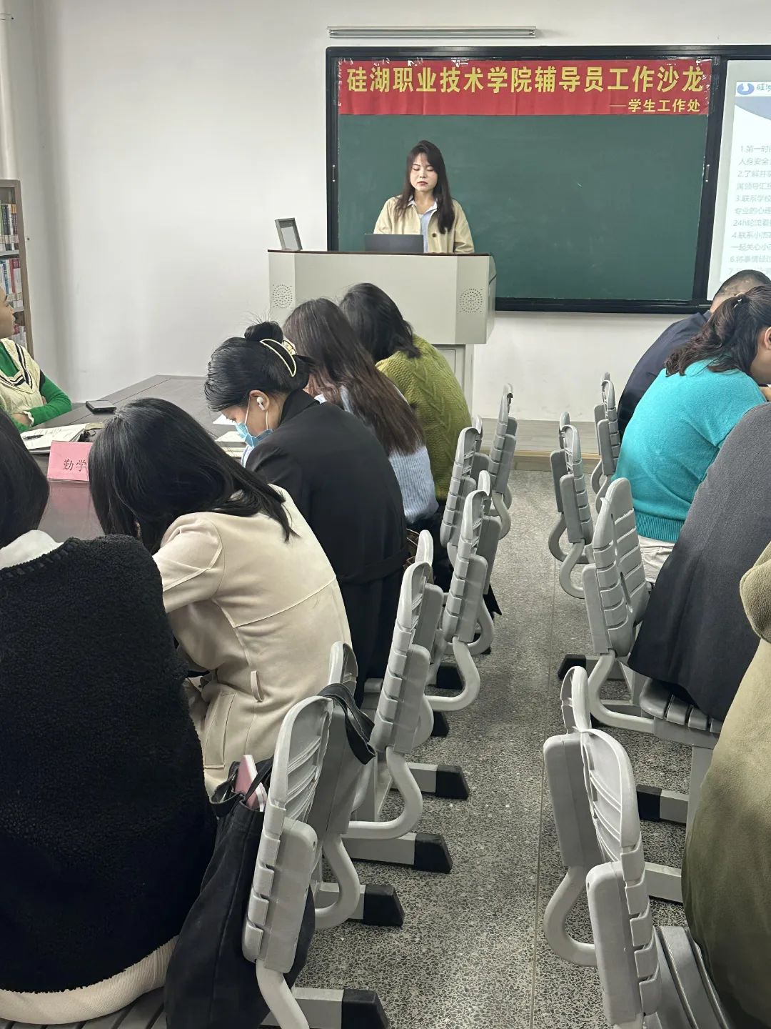 此次活动中,张婷婷、杨玉莹和杨微微三位老师作为主讲老师,分享她们在处理突发事件过程中的亲身经历、宝贵经验及深刻思考。她们希望通过自己的实际工作案例,激发更多辅导员的深入探讨与交流,共同提升应对各类突发事件的能力,为学生的安全与校园的和谐稳定贡献力量