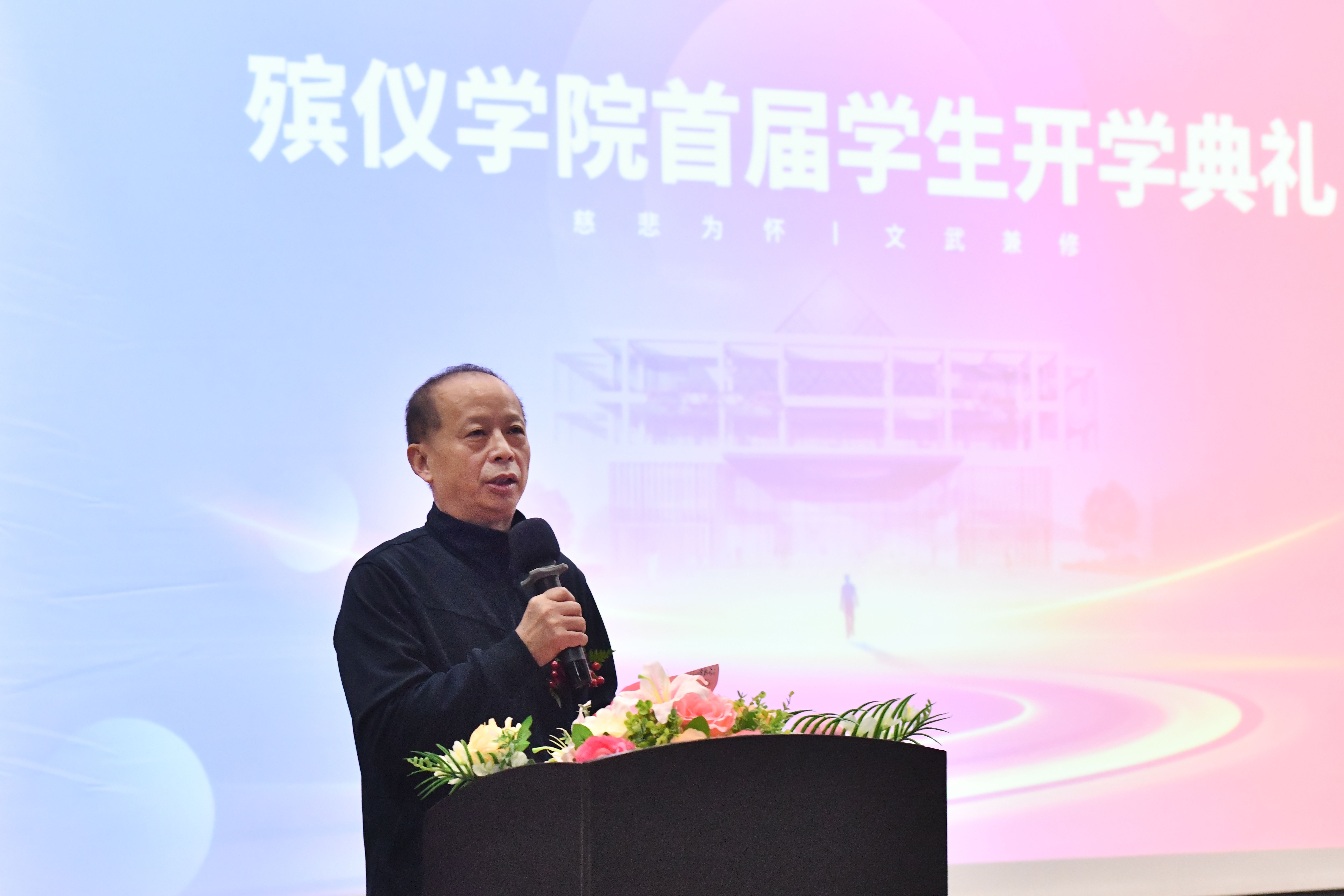 南京市殡葬管理处副处长、纪委书记管海发表了致辞,管处长对硅湖职业技术学院殡仪产业学院的开学典礼表示祝贺,充分肯定了此次开学典礼对于殡葬教育事业的重要意义,对学院的未来发展表达了深深的期许,希望学院能在殡葬人才培养方面发挥积极且关键的作用,为殡葬行业输送更多优秀的专业人才。