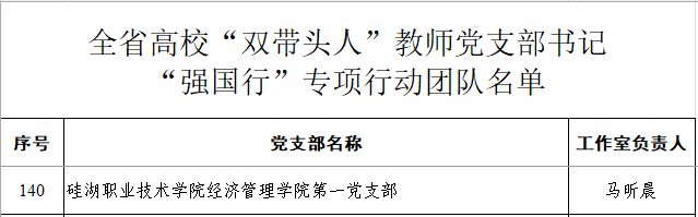 近日,江苏省委教育工委正式公布了全省高校 “双带头人” 教师党支部书记 “强国行” 专项行动团队名单,我校经济管理学院第一党支部凭借自身的实力与优势,成功入选该名单。