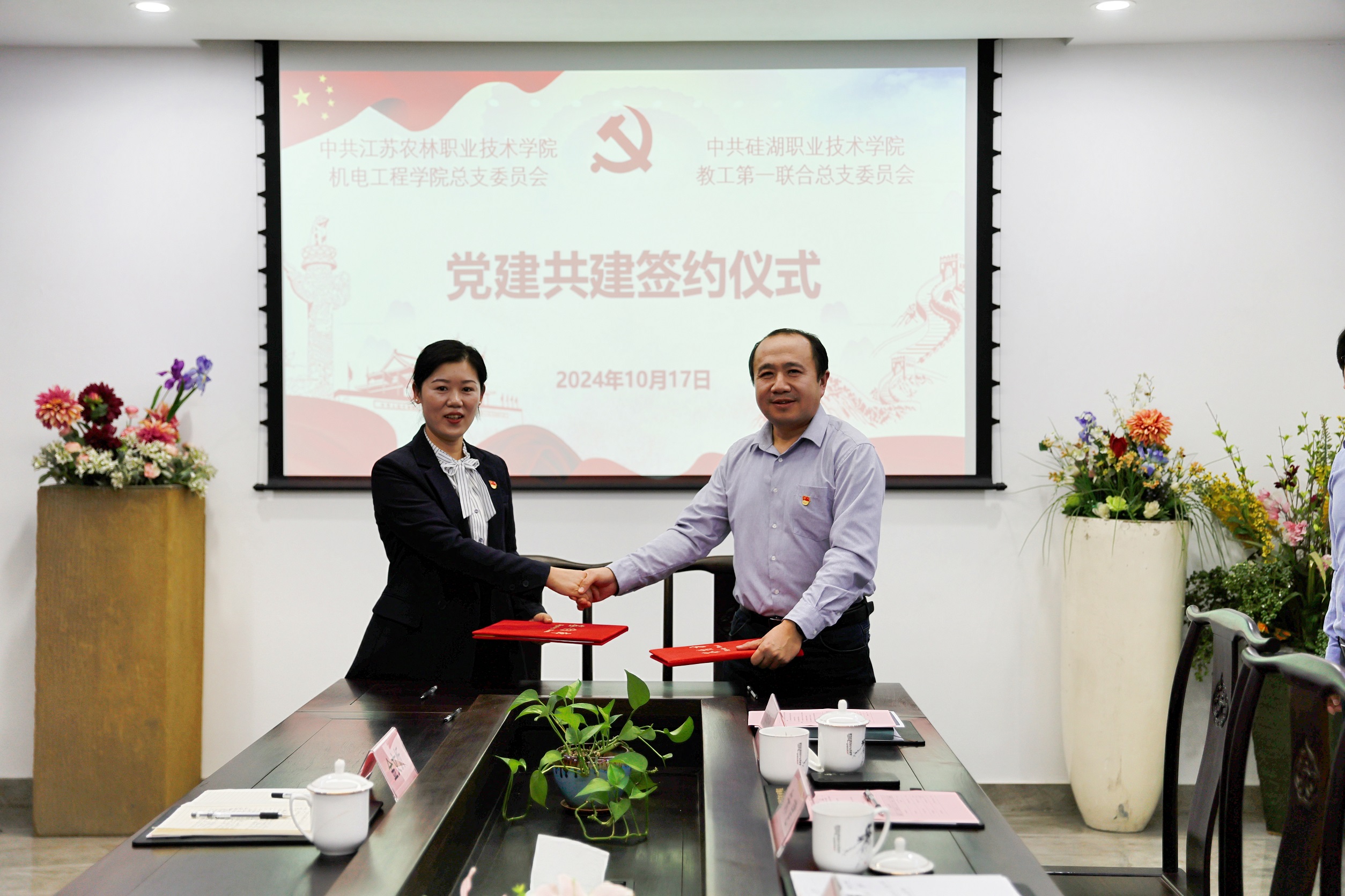 此次共建合作将进一步推动我校机电汽车工程学院和江苏农林职业技术学院机电工程学院在党建工作和业务工作中深度融合,通过互帮、互学、互鉴,探索构建党建工作新格局,落实立德树人根本任务,促进高职院校教学水平的提升,谱写同类院校之间的党建联合新篇章。