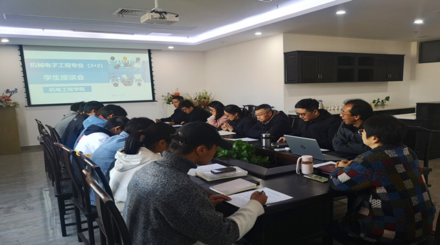 2021年11月12日下午三点,机电工程学院在顺才楼605会议室召开机械电子工程专业(3+2)学生座谈会。座谈会由机电工程学院张盛常务副院长主持,基础部屈赛英主任、教务处王海舟副处长、机电工程学院教研室主任杭建东、机电工程学院教师冯静娟、教官杨定勇、辅导员闫培参加座谈会,分管教学的校长助理姚月霞教授出席座谈会并发表讲话。