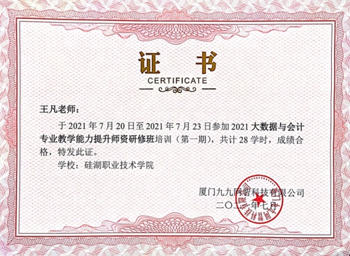 2021年7月20-23日参加了厦门九九网智科技有限公司在线上举办的2021年全国高等院校大数据与会计专业教学能力提升师资研修班。培训基于Python语言和商业智能分析技术,结合财务专业核心课程,帮助老师熟悉大数据技术在专业中的应用,掌握相关教学平台辅助教学的方法。